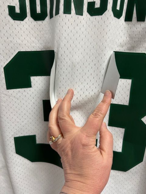 This is a Mitchell & Ness Michigan State Magic Johnson 1978-79 mens Swingman jersey, size X-Large. This jersey has heat sealed printed twill front logo, player name, and numbers. The flaw with this jersey is that the back numbers are starting to peel off (see inset photo), this could probably be fixed by using some fabric glue or sewing. This jersey also does not have hang tags (it was a customer return).
