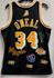 This is a Mitchell & Ness 1996 Los Angeles Lakers Shaquille O'Neal "Highway" mens Swingman jersey, size medium. This jersey has sewn on printed twill front logo, player name, and numbers, and multiple sewn on embroidered accent patches on the front and back. There is nothing physically wrong with this jersey, it just has the wrong size on the hang tag (hang tag says X-Large, neck tag says medium. It is a medium). This jersey is in great condition.