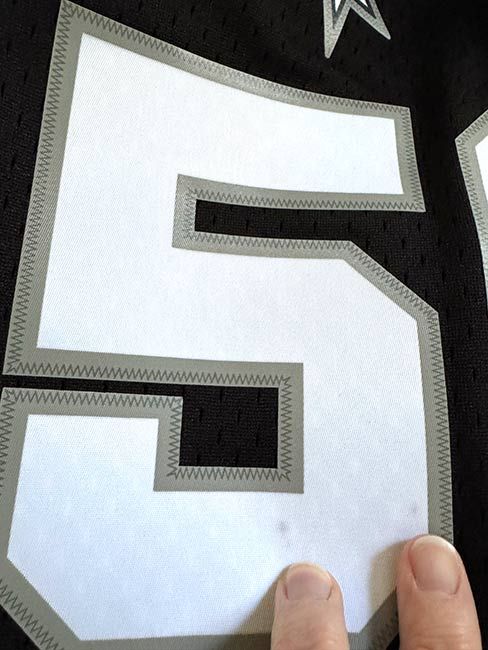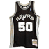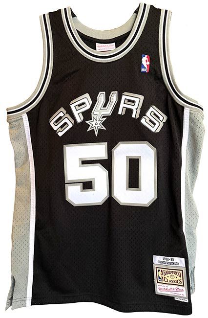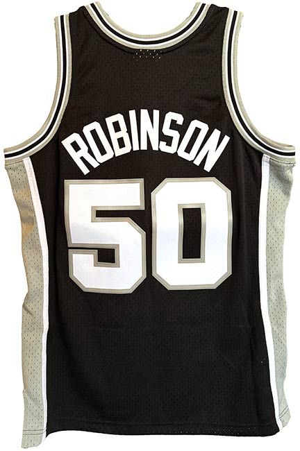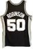 This is a San Antonio Spurs Robinson #50 mens Swingman jersey, size medium. This jersey has heat sealed printed twill front logo, player name, and numbers. The flaw on this jersey is the front number 5 has two dots on it (see inset photo) and it also does not have any hang tags (was a customer return). Other than that, this jersey is in good condition.