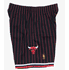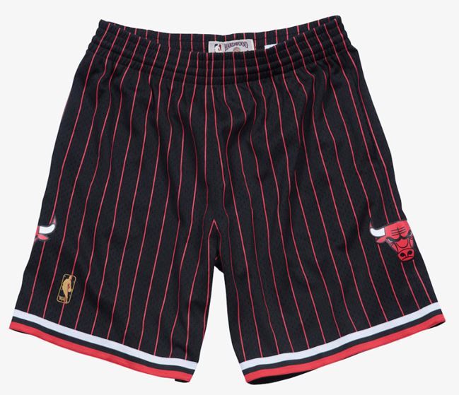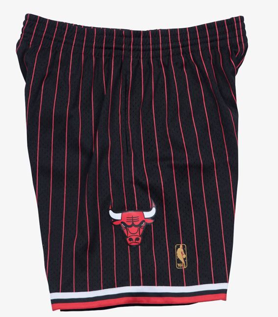 These are Mitchell & Ness Chicago Bulls 1996-97 alternate pinstripe mens authentic Swingman shorts. These shorts have a drawstring waist, two side pockets, and a heat sealed printed twill team logo on the side of each leg. Fits true to size. Officially licensed.