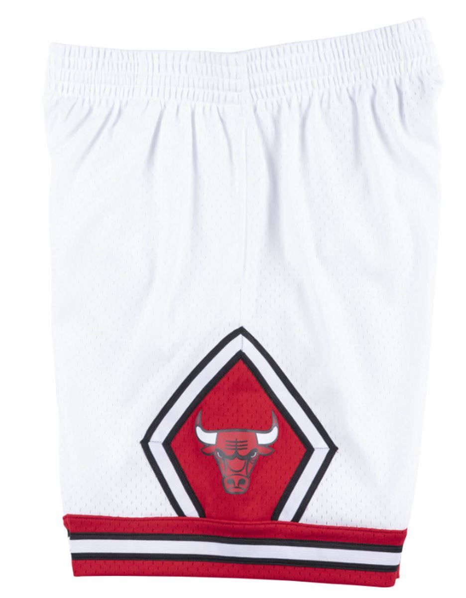 These are Mitchell & Ness Chicago Bulls 1997-98 mens white authentic Swingman shorts. These shorts have a drawstring waist, two side pockets, and heat sealed printed team logo on the side of each legs. Fits true to size. Officially licensed.