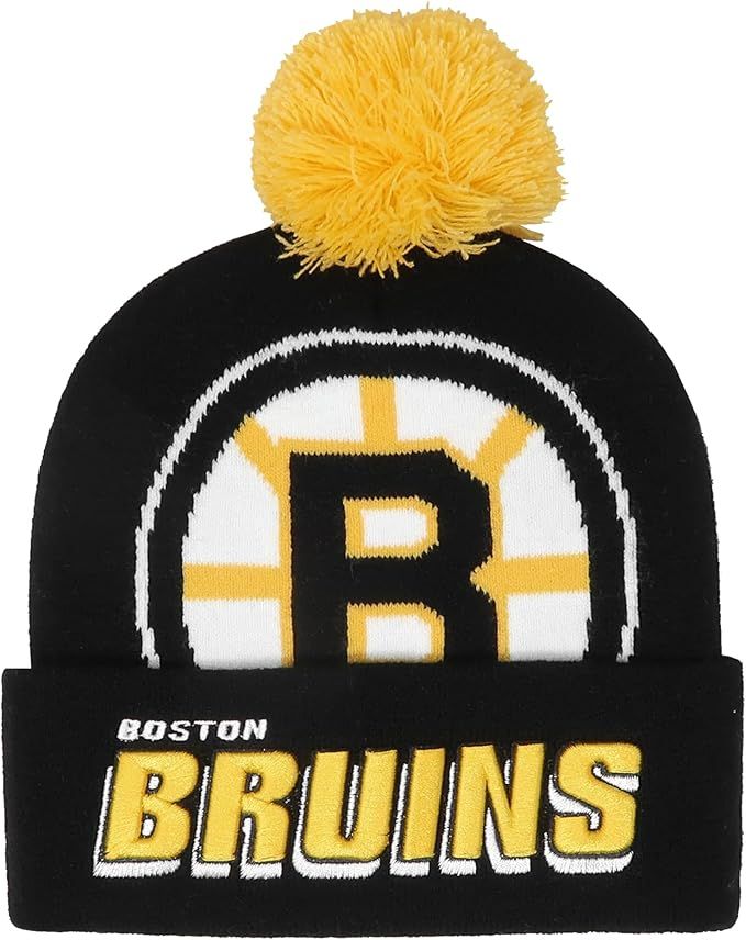 These are Mitchell & Ness Punch Out pom knit hats in Boston Bruins. These hats are 100% acrylic, have a knit pom, and embroidered team and company logo on the cuff. We have several pieces of each team in stock.