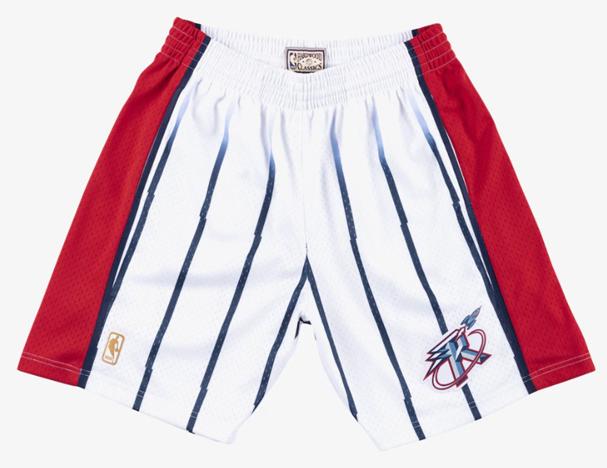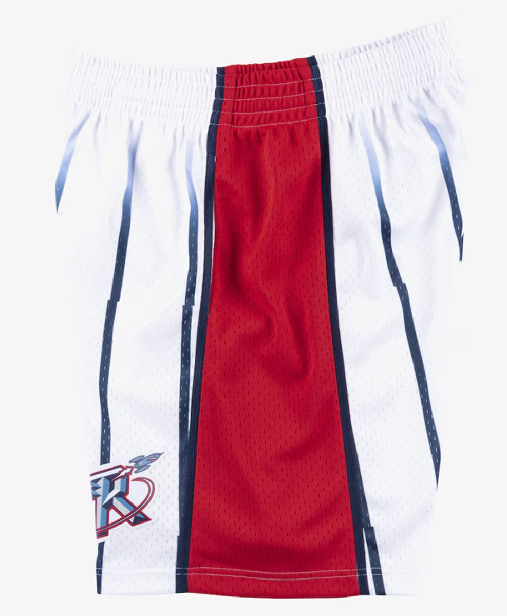 These are Mitchell & Ness Houston Rockets 1996-97 mens Swingman shorts. These shorts have a drawstring waist, side pockets, and a heat sealed printed twill team logo on the front of the left leg. Fits true to size, officially licensed.