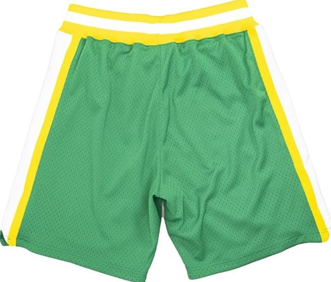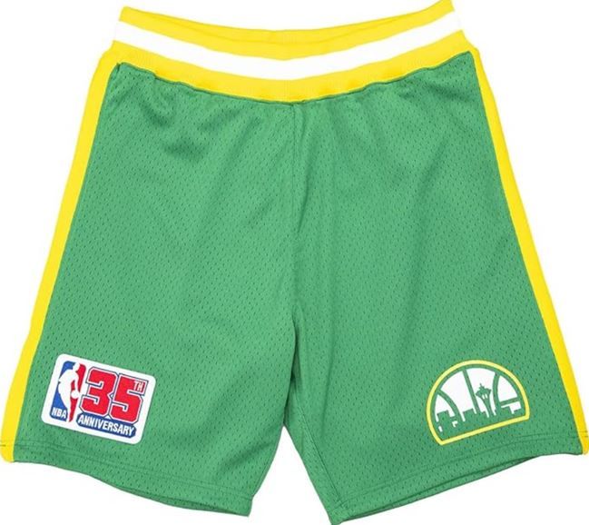 These are Mitchell & Ness Seattle Supersonics 1980-81 mens authentic shorts. These shorts have an elasticized drawstring waist, two side pockets, embroidered team name on inside back of waistband, and a printed Sonics logo on the front of the left leg, and a sewn on embroidered 35th anniversary patch on the front right leg. Fits true to size. Officially licensed.